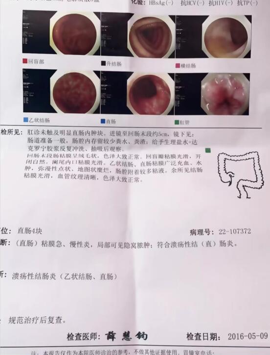 看到报告的那一刻,才明白找对方法,溃疡性结肠炎是可以摆脱的,并不像西医说的必须要终身服药。主任的方法让我看到了新希望。后来按照主任指导又坚持了一疗程巩固了一下,直到现在病情不但没复发过,反而觉得身体状态比前两年还要好,吃喝拉撒睡个个顺心,生活也有奔头。